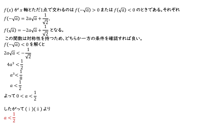 (2) \(a\)を実数とする。方程式