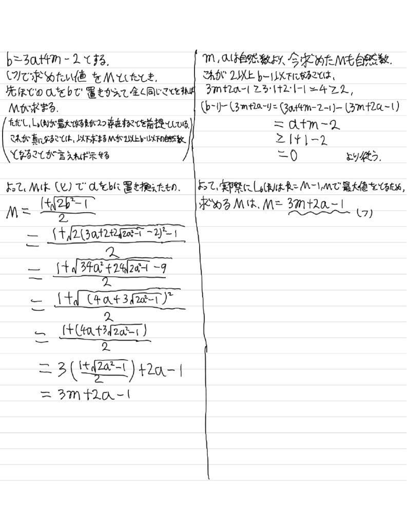 すると根号が含まれる形の答えが出てくるが、解答には「\(a\)と\(m\)の1次式で表せ」と書いてあることから、根号を外すことを試みる。