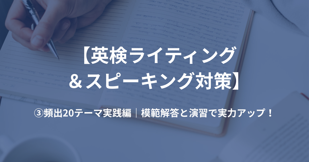 👉 【英検ライティング&スピーキング対策】①頻出20テーマ導入編|まずは意見をもつ練習から!