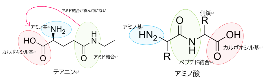 • テアニン:構造が似ているが過剰興奮は起こさない